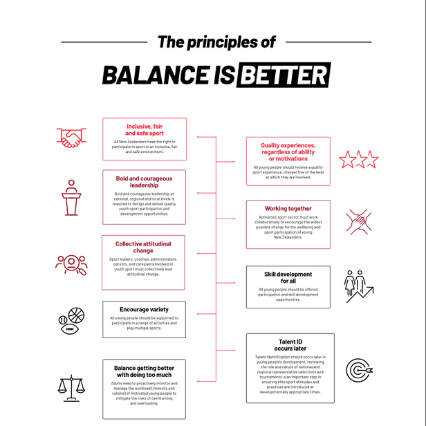 Balance is Better is an evidence-based approach. The focus of the philosophy is on why young people play sport – to have fun, be challenged, develop and improve, be part of a team or group, and enjoy time with friends.