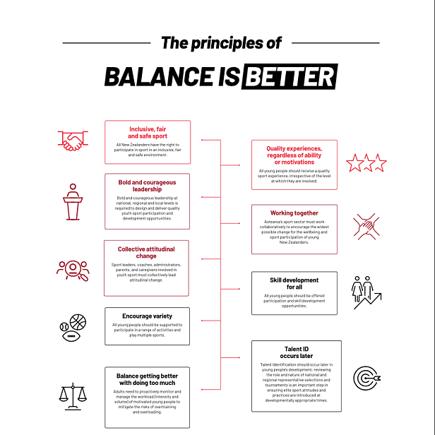 Balance is Better is an evidence-based approach. The focus of the philosophy is on why young people play sport – to have fun, be challenged, develop and improve, be part of a team or group, and enjoy time with friends.